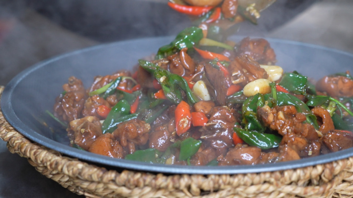 冰雪点燃的,不只有运动的激情,还有随之升腾的烟火气。晌午时分,距雪场不远的磨石塘村“炒鸡一条街”已是香气缭绕、人声鼎沸。“炒鸡王”店里座无虚席,店主王悦璇端着大盘,利落地穿梭在各桌之间。