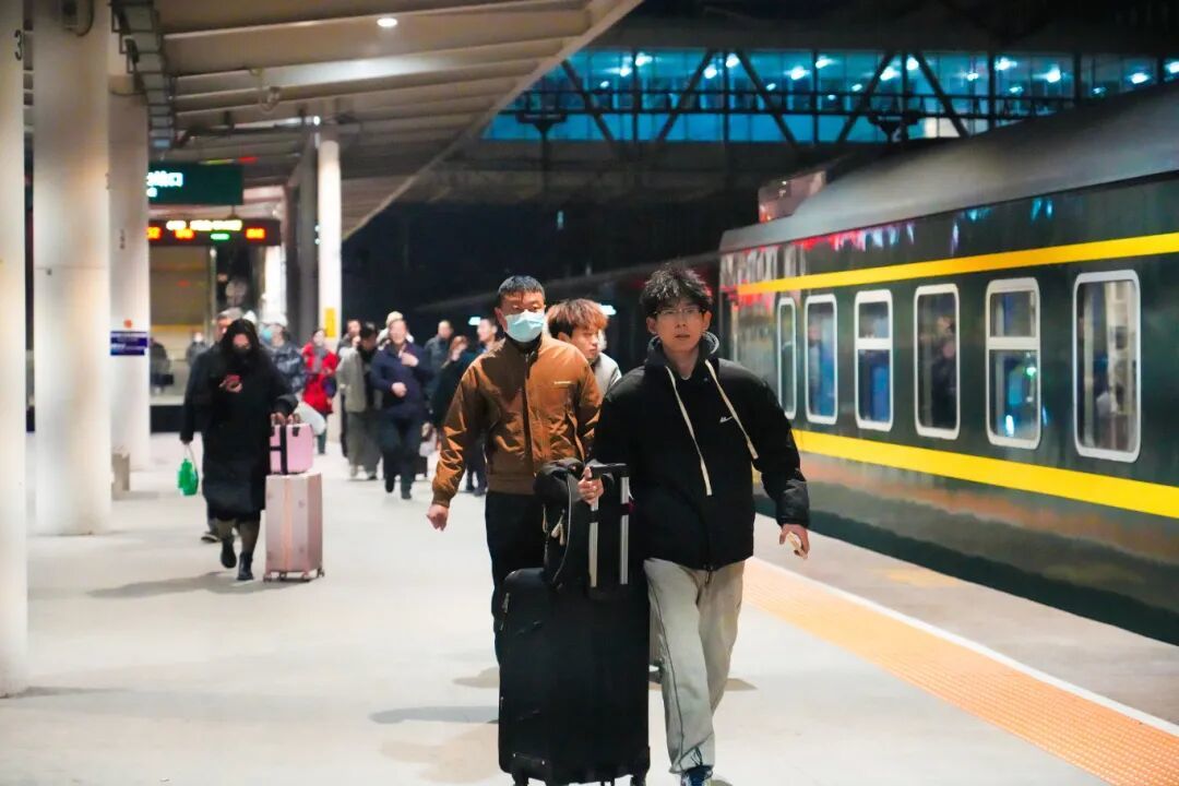 邯郸站2号站台上,一列只有三节车厢的6423次绿皮火车静静停靠。旅客们脚步匆匆,向着温暖的车厢走去。