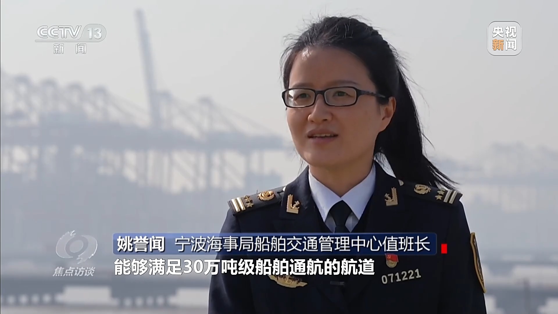 宁波海事局船舶交通管理中心值班长 姚誉闻:虾峙门航道是我们之前唯一一条能够满足30万吨级船舶通航的航道,像现在虾峙门航道年船舶交通流量大概在5万艘次,已经接近于饱和容量了,必然有些船舶可能要等待,会影响港口整体通航效率。