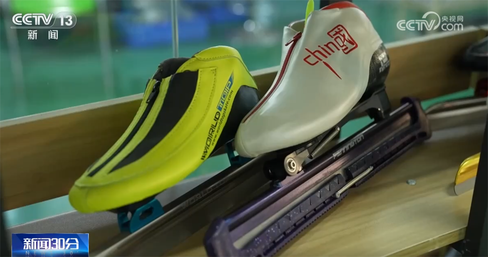 长春市某体育用品器材公司工作人员 岳汝静:每一双基本都是根据运动员脚型细节定制化打造,高度贴合鞋身,解决了亚洲运动员脚型与进口鞋不匹配的问题。