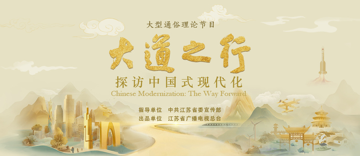 为深入学习贯彻习近平新时代中国特色社会主义思想,展现中国式现代化的鲜明特色和深刻内涵,由江苏省委宣传部指导,江苏广电总台出品的5集大型通俗理论节目《大道之行:探访中国式现代化》于2025年12月30日21:20起在江苏卫视开播,并同步上线荔枝新闻、inJiangsu我苏、ai荔枝等平台。节目以习近平新时代中国特色社会主义思想为根本指引,紧密围绕党的二十届四中全会关于“十五五”规划的战略部署,聚焦“中国式现代化”这一核心主题,立足中国式现代化五个方面的中国特色,从国际与国内、历史与现实、理论与实践等多重维度展开系统解读,全方位勾勒中国式现代化的壮丽图景。
