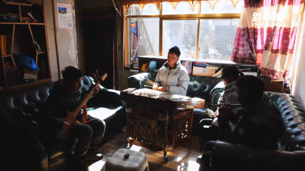 在拉萨东郊老安居园的一处小院,达瓦次仁与乐团成员们同住,也在这里收获了爱情——他与乐团创始人达琼的妹妹朋琼相恋结婚,如今已是两个孩子的父亲。没有演出时,他们上午卖自制藏香,下午排练,生活简单却充实。