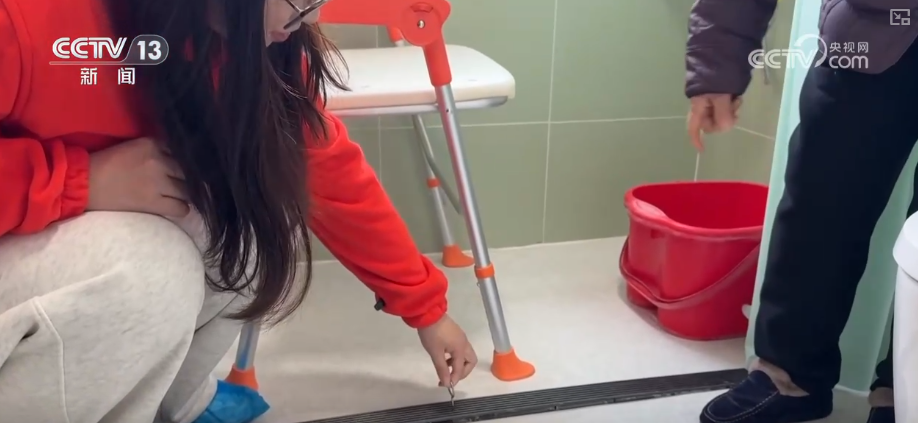 最近,家住上海普陀区的吕玉恒和赵双花老人,用上了适老化改造后的卫生间。地面做成“零高差”,铺上了防滑卷材,即使光脚也不容易打滑。可折叠的沐浴凳、L型扶手,每一个细节都围绕着“适老”二字展开。