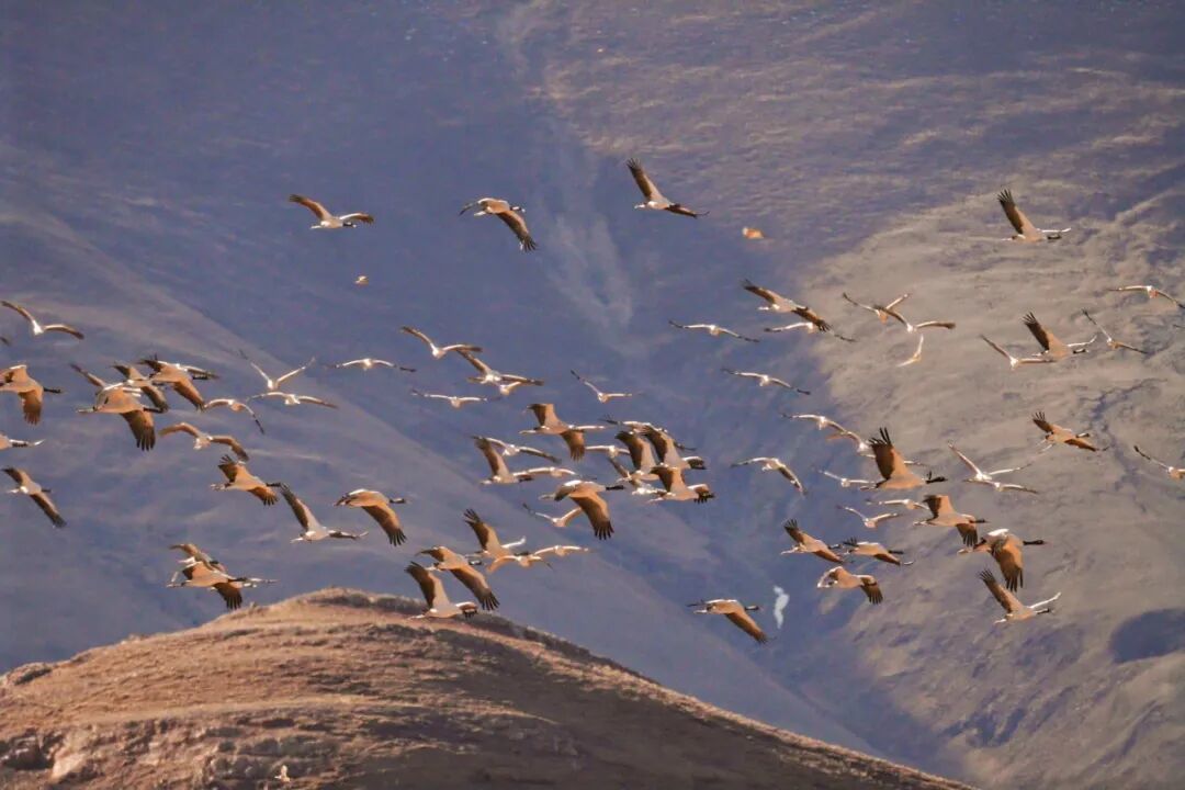 黑颈鹤是国家一级保护动物,也是世界上唯一在高原繁殖和越冬的鹤类,被称为“高原神鸟”。林周县凭借其独特的生态资源,已成为黑颈鹤重要的越冬栖息地。近年来林周县冬季黑颈鹤数量稳定在1600至2300只之间,占拉萨越冬黑颈鹤总数的近六成。