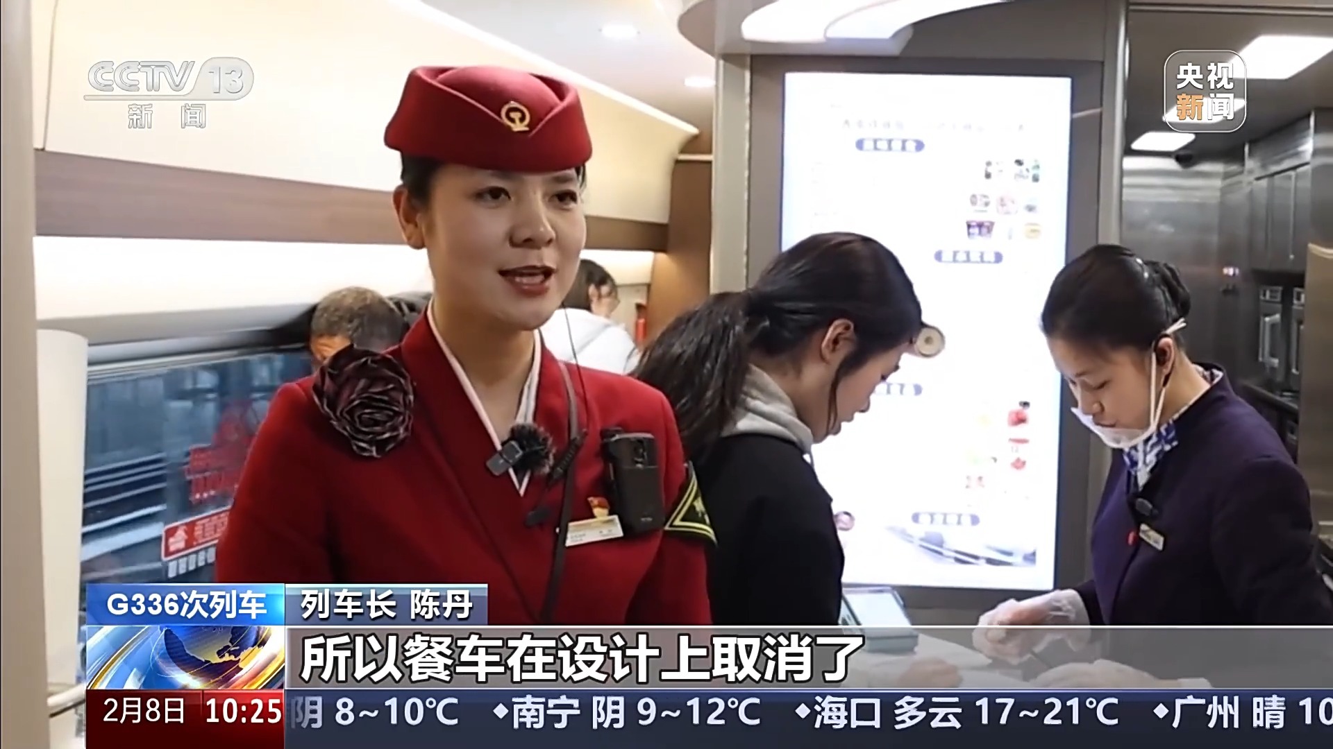 T147列车长 郑洁:现在除了在餐车提供现做餐食外,12306网络订餐外卖服务让我们的餐服人员能够更精准服务到有用餐需求的旅客,打破了我们以前餐食品种少的限制,更好地满足旅客餐食多样化需求。