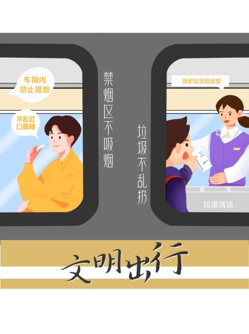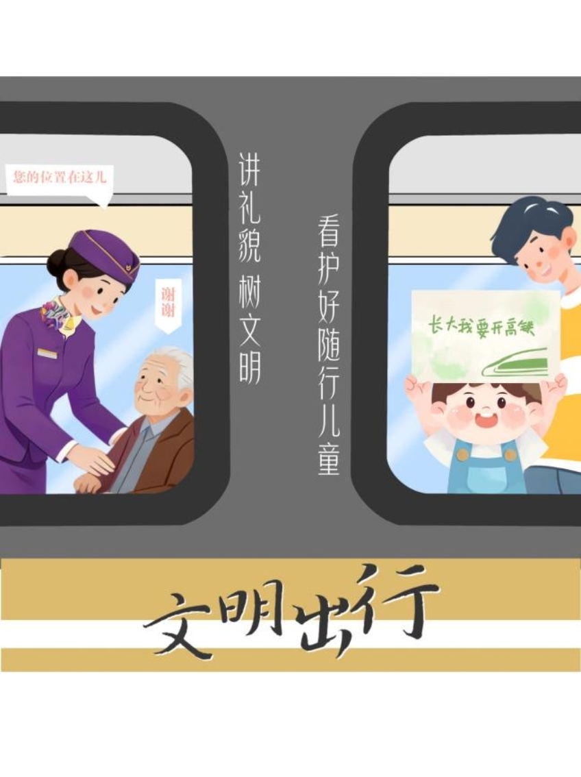 文明出行,体现在点滴细节之中。例如,在高铁上自觉对号入座,不霸座、不喧哗;自驾途中文明礼让、遵守交通规则;登机时遵守秩序,不插队、不拥挤。注意言谈举止,爱护公共设施,保持环境整洁……这些看似微小的自律与善意相互汇聚,方能让文明之花在春运旅途上处处绽放。