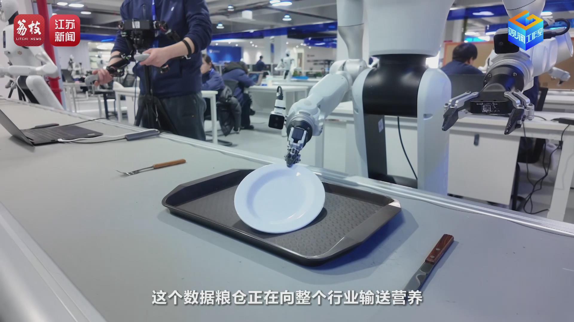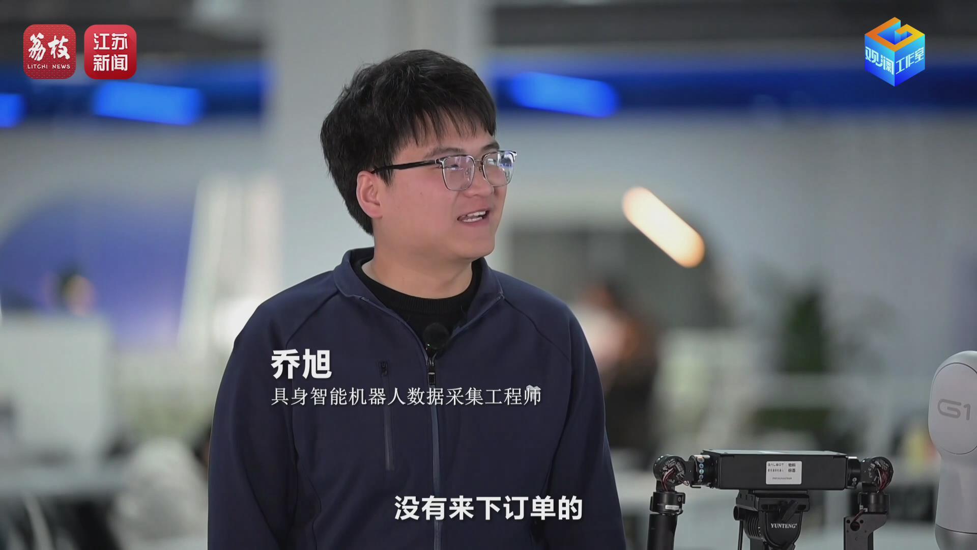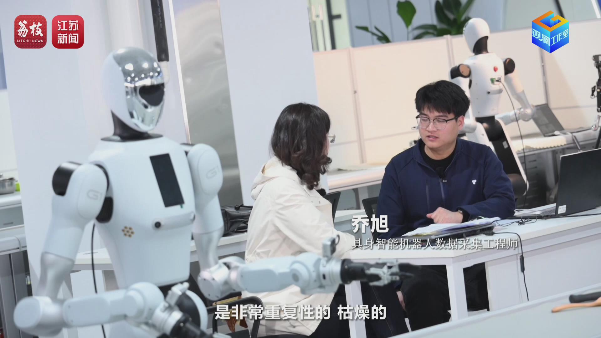 2026年2月,荔枝新闻中心观澜工作室记者姜超楠在位于无锡的江苏省具身智能机器人工业数据采集与实训中心见到了正在教“赛博小伙”学干活的乔旭和他的伙伴们。乔旭,2025年应届毕业生,才工作就搭上了具身智能发展的“高铁”,成为江苏第一批具身智能机器人数据采集工程师。