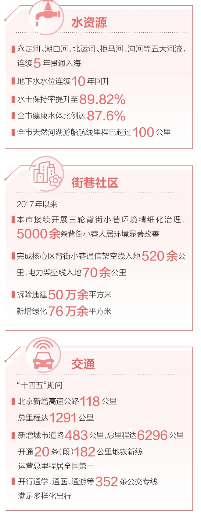 一批服务就学、就医、通勤的急难愁盼路段陆续打通。西城区儿童医院北侧的月坛南街1号院北侧路开放交通后,有效织补区域路网,市民就医更加便捷;通州区春明西路北段贯通后,服务中国人民大学通州校区师生出行,延伸了城市绿心公园生活圈;朝阳区北苑东路的贯通,实现了回天地区北五环与北六环的高效连接,分流立汤路车流,周边居民前往天通苑东地铁站绕行距离缩短5公里。