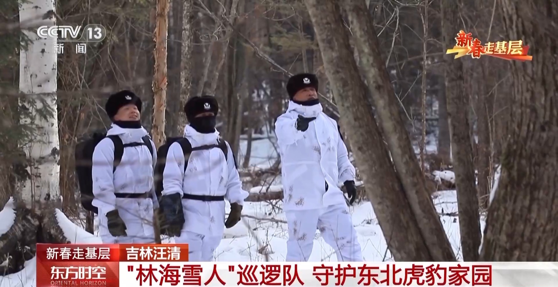 吉林汪清位于东北虎豹国家公园核心区,林区面积6000多平方公里。为守护好这片林海和虎豹家园,2025年10月,汪清森林公安分局组建了一支年轻的巡逻队。10余名年轻民警身穿白色的隐蔽服,化身“林海雪人”,穿梭在冬季的茫茫林海雪原,打击盗伐盗猎,守护生态安全。