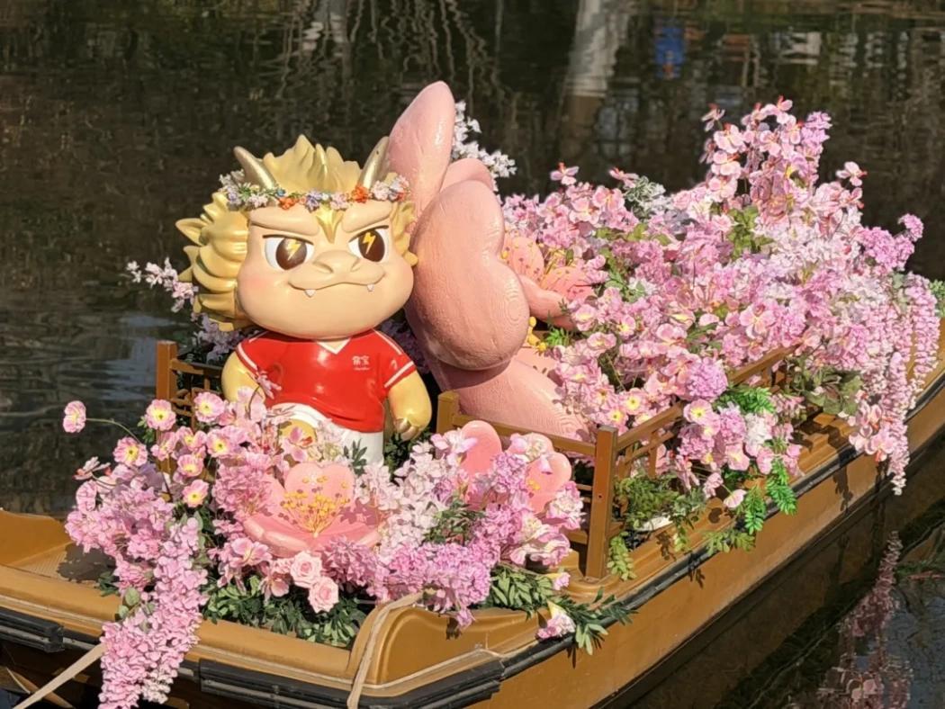 在江南水乡,早春的序曲总是由梅花奏响。江苏常州便是这抹春色里最具代表性的剪影。龙城正月,古运河畔红灯笼高挂,红梅公园内,唐代红梅阁翘角飞檐,阁前红梅灿若云霞,恰如赵翼诗中所绘的盛景。这里的赏梅,早已不是单纯的游园,而是一场雅俗共赏的年俗盛会。文旅IP“常宝"穿梭送福,打卡点红灯笼高悬,大年初一的市集上,手作、梅花好物琳琅满目,糖画、梅花酥香气四溢,文笔塔的花瀑氛围拉满,市民在梅香与烟火气中收获新春幸福。