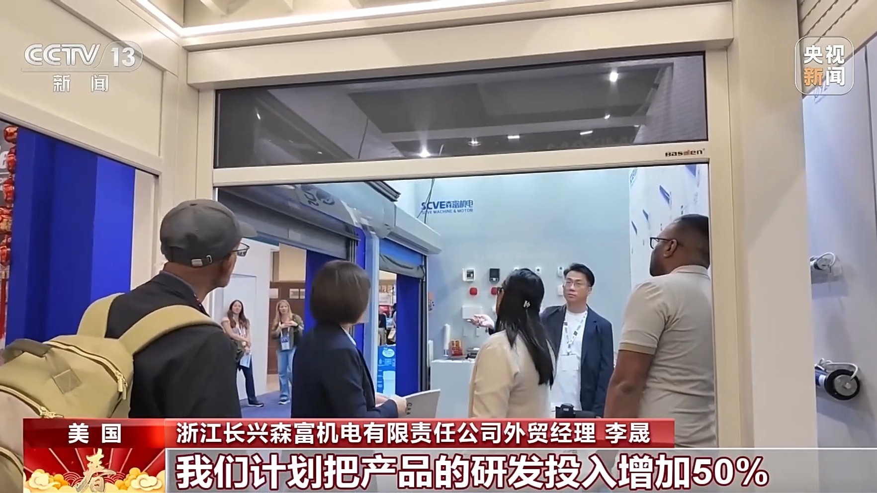 浙江长兴森富机电有限责任公司外贸经理 李晟:不仅仅是观展的客户,很多参展的展商也纷纷来我们的展台上进行咨询,在新的一年,我们计划把产品的研发投入增加50%,让我们中国制造能够在国际市场上站稳脚跟。