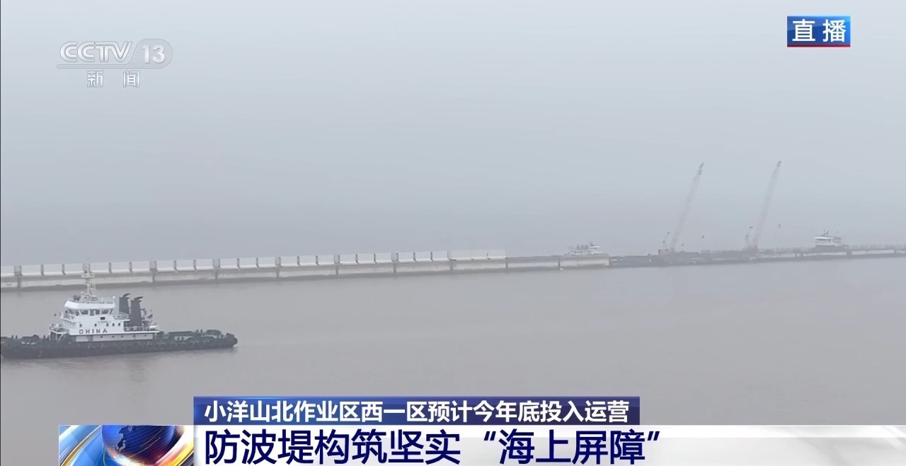 总台记者 曾侃:小洋山北作业区西一区的最西端,就是正在建设的小洋山北作业区码头岸线工程、未来集装箱装卸的作业区域,也是集装箱堆场、码头等工程建设的基础。整个小洋山北作业区码头岸线全长6100米,西一区码头岸线约800米,已于去年底全部完成。西一区布局4个2万吨级泊位,目前正在进行码头最外层浇筑。