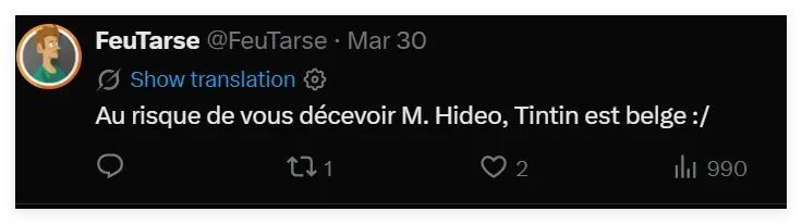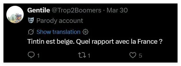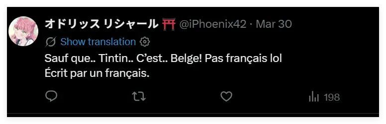 从铃木发布的帖文来看,虽然他的评论区里有法国网民在为他的这番模仿秀叫好,但也有比利时等国的网民强调说,丁丁是比利时人,不是法国人。