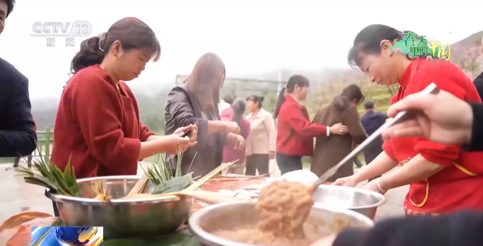 游客在赏花的同时可以亲手体验制作艾米果、糍粑等小吃,品尝春天最地道的滋味。