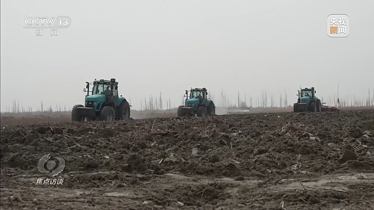 记者在这里还见到一台超大型犁具,技术人员介绍,这种犁具需要超大马力拖拉机才能带动。眼前带着它的,是国内自主研发的最新型450马力无级变速拖拉机,填补了我国大负荷重载作业农机的空白,即将投入新疆的春耕生产,目前正进行出发前的最后调试。在东北、新疆等地,国产大马力智能拖拉机已广泛应用。