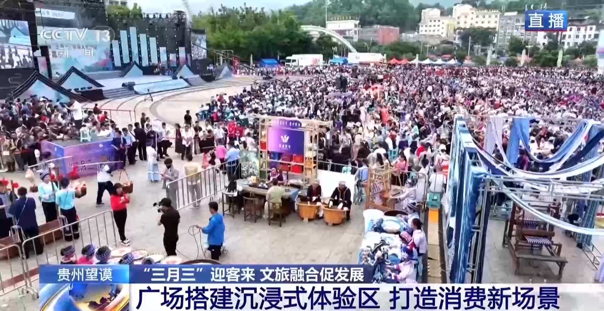 除了巡游展演外,这次望谟“三月三”活动中,在广场搭建了互动体验区,打造消费新场景,游客们可以分批进入现场体验。这里展示的就是望谟紫茶的炒制以及冲泡技艺;蜡染制作体验区,从织布到画蜡再到浸染,全流程展现指尖上的蓝白美学。在望谟,布依族“无糯不成席”。簸箕里“望谟三月三”欢迎您的字样就是用五颜六色的糯米饭拼成的。用春天鲜嫩的枫香叶、绽放的密蒙花等植物染出艳丽的色彩,每一口都带着春天的味道。