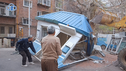 亭子倒下的那一刻,大伙的心都亮堂了。