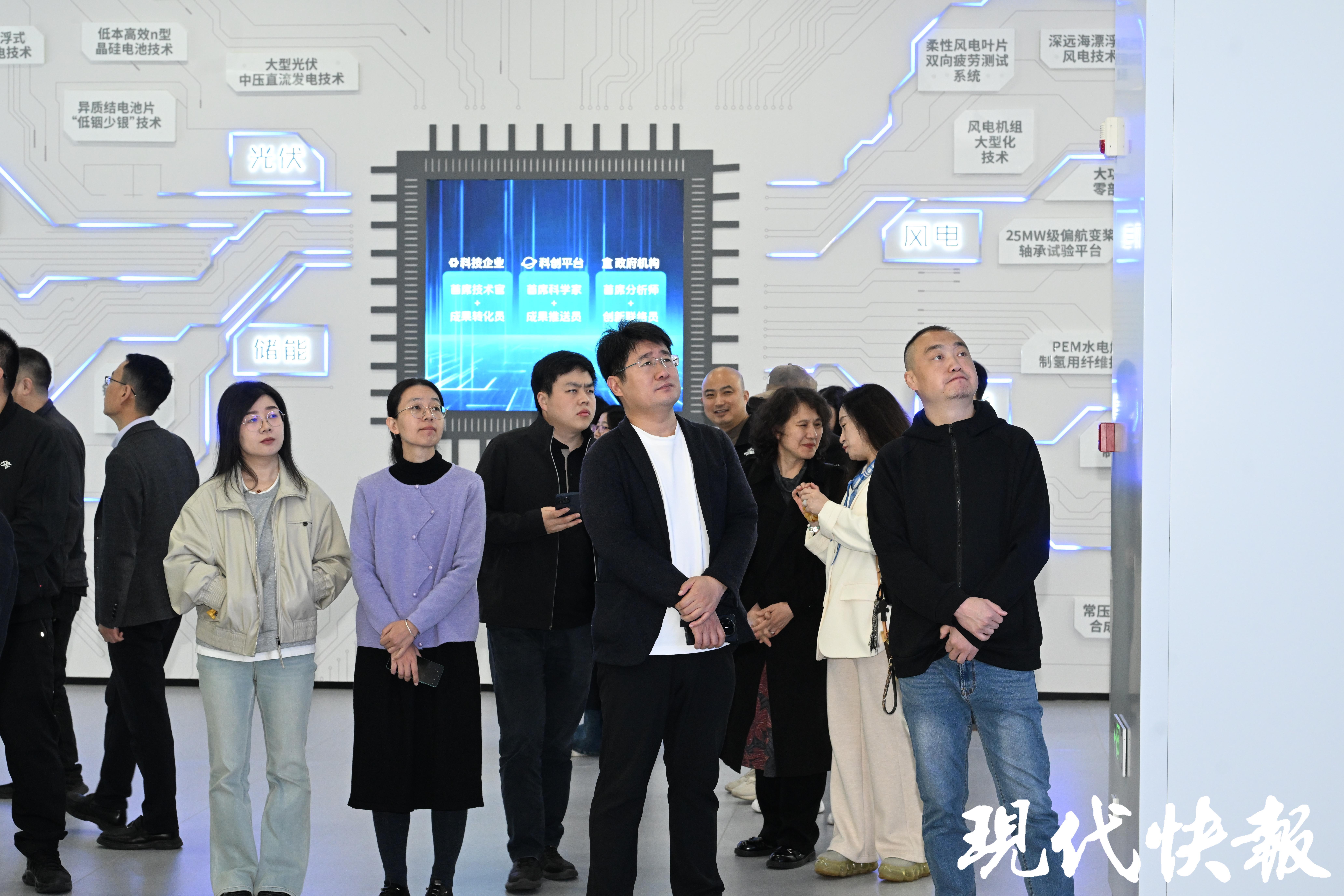 媒体嘉宾边走边看,不时举起手机、相机拍摄。会客厅内,一面“创新主体墙”格外醒目:中科院电工所、上海应物所、广州化学所、金风科技、三峡集团等行业龙头赫然在列。