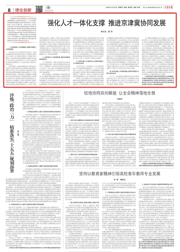 京津冀地区作为京畿重地,是引领全国高质量发展的三大重要动力源之一。2026年既是京津冀协同发展重大国家战略实施十二周年,也是“十五五”开局之年。2026年2月,习近平总书记在北京考察并看望慰问基层干部群众时发表重要讲话,强调要“推动京津冀协同发展不断走深走实”。“十五五”规划纲要也提出,要“深入推进京津冀协同发展,形成更加紧密的全方位协同发展格局”。构建资源共通、合作共赢的人才一体化发展体系,是推动京津冀协同发展不断迈上新台阶、使京津冀成为中国式现代化建设的先行区和示范区的应有之义。