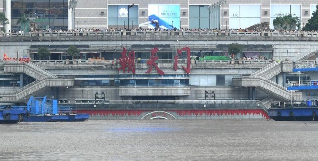 重庆地标朝天门遭遇洪水