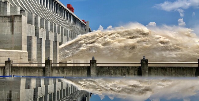 记录历史!三峡泄洪镜像图