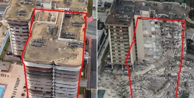 美国公寓楼坍塌前后对比