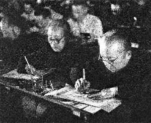 李济深、何香凝在中国人民政治协商会议第一届全体会议上填写选票。