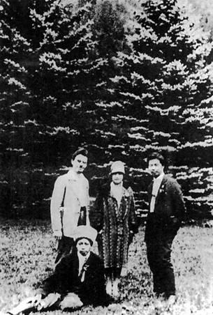 1927年大革命失败后,邓演达、宋庆龄于8月间先后到达莫斯科。图为邓演达(右) 同宋庆龄(中)、王人达(前坐)、鲍罗廷(左)等在苏联高加索合影。