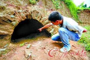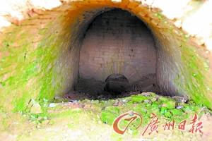 在黄埔文冲大田山路,从山脚步上山腰,漫山的蕉树杂草之中,有一片近千平方米的空地。空地上散落的青砖混着黄泥,有的青砖上布满花纹,看起来年岁已久。空地上有多处青砖垒出的洞口,多在一米见方,几处已被填埋。远处一个洞口直通山体深处,被砖墙封住,里面似乎别有洞天。