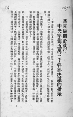 华东局关于执行中央准备五万三千干部决议的指示。现珍藏于省档案馆。