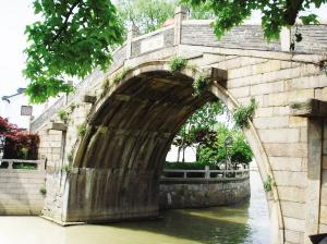 吴江垂虹桥则是古代南方薄墩联拱最长的长桥,经多次重修,元至正十二年(1352)已经达到85孔,中间有三起三落的3个驼峰高孔,用以通航。可惜此桥已于上世纪60年代坍毁,仅剩11孔。垂虹桥的风采,现在只能从故宫博物院珍藏的明代画家沈周《垂虹暮色图》中去品鉴了。