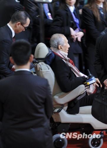 12月20日,庆祝澳门回归祖国十周年大会暨澳门特别行政区第三届政府就职典礼在澳门东亚运动会体育馆举行。澳门博彩股份有限公司行政总裁何鸿燊出席大会。 中新社发 廖攀 摄
