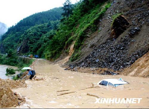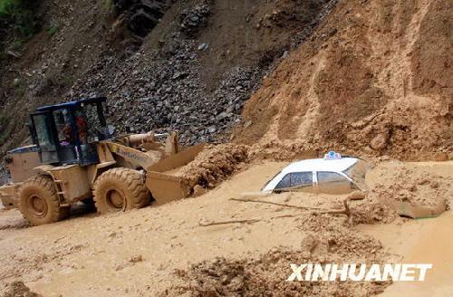 6月9日,贵州省榕江县遭遇强降雨,境内321国道边坡多处大面积坍塌,200多辆汽车被阻;在998公里处附近,泥石流将一辆出租车掩埋,幸未造成人员伤亡。经过奋战,榕江公路管理段的路政人员将遇险车辆救出,疏通了道路。