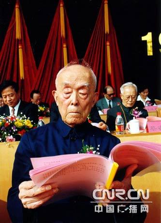 季羡林在山大百年校庆典礼上。“母校山东大学今年一百岁了。但是,我成为山大的校友却已经有七十五年了,是校龄的四分之三。”这是季羡林在祝贺山东大学百年校庆写下的文字