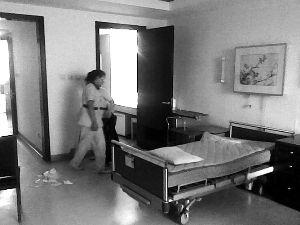 昨日,301医院西院4层3病床,护工们正在整理季老病房。