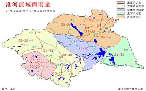 7月11日08时至12日08时淮河流域面雨量预报图