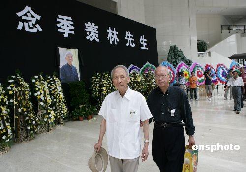 7月12日,北京大学搭设悼念季羡林先生的灵堂,供学校师生和各界人士前来祭奠。7月11日上午9时,北京大学教授、国学大师季羡林先生在北京辞世,享年98岁。中新社发 王天天 摄