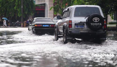 2009年7月12日,海南琼海市一些低洼路段大水漫街。今年第五号热带风暴“苏迪罗”当天早晨5时30分在海南文昌市铺前镇登陆,登陆时中心风力达8级。海南省气象台发布暴雨红色预警信号。 中新社发 蒙钟德 摄