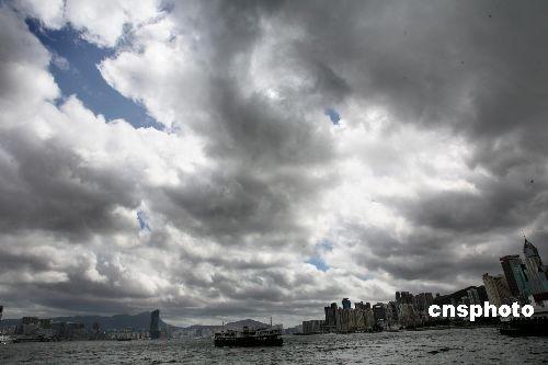 七月十一日,香港渡轮航行在维多利亚港海面上。其上空的白云正变为乌云。热带风暴“苏迪罗”正逼近香港,香港天文台已挂出三号强风信号。 中新社发 郑祚声 摄