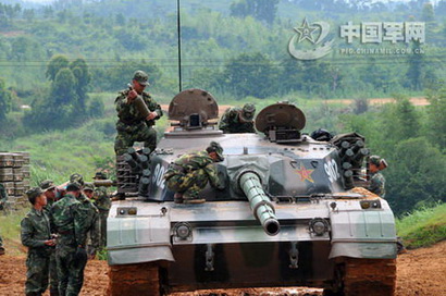 资料图:解放军士兵为96式坦克补给弹药