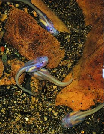 在洞内的暗河中,我们发现了很多十几厘米长的透明小鱼,五脏六腑都看得一清二楚。除此之外,有些鱼还长有一双脚,当地人称“巴岩鱼”。