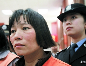 图:“6·10”特大贩婴案团伙核心人物喻立香在法庭上等待宣判(新京报)