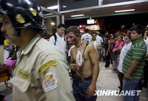 7月26日,一名在骚乱中受伤的男子被送往洪都拉斯首都特古西加尔巴的一家医院。新华社发(戴维摄)