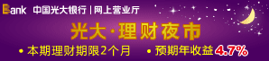 光大理财夜市本期专属产品 预期年收益4.7%
