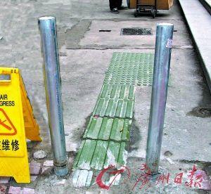 盲人道被粗大铁柱夹住