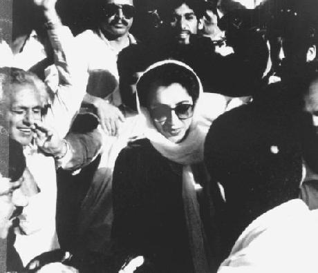 这是1990年8月7日,在巴总统伊沙克·汗宣布解除贝·布托的总理职务后,贝·布托离开总理府。