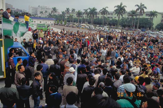 3月18日,广场的静坐运动已快速发展成全台性的学生运动串连活动,学生运动的组织者表示要以“自主、隔离、和平、秩序”的四大原则来进行广场抗争。当天下午,民进党动员数万群众发起造势大会,在广场大门旁边声讨“国大”。静坐广场与围观声援的民众间以绳索区隔,在