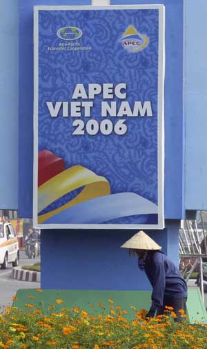 亚太经合组织(APEC)领导人非正式会议将于12日至19日在越南首都河内举行。走进河内机场,便可以看到大海颜色的巨大APEC广告牌。河内各道路上不时闪过红、蓝、黄各色APEC标语牌和欢迎旗帜。