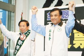 苏嘉全(右)昨天帮郭荣宗(左)助选时说,到各地问那个政党会贿选,答案一定是国民党。(图片来源:台湾《联合报》)