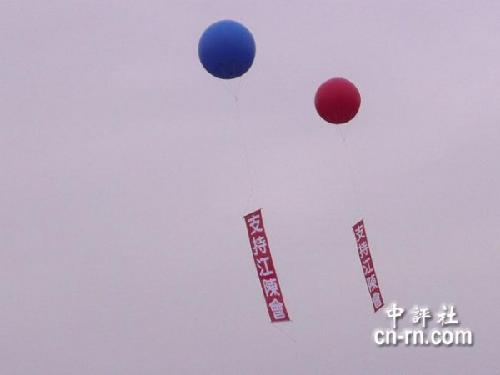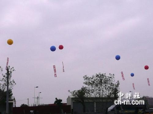 台中市民众施放气球 挂上“支持陈江会”的标语